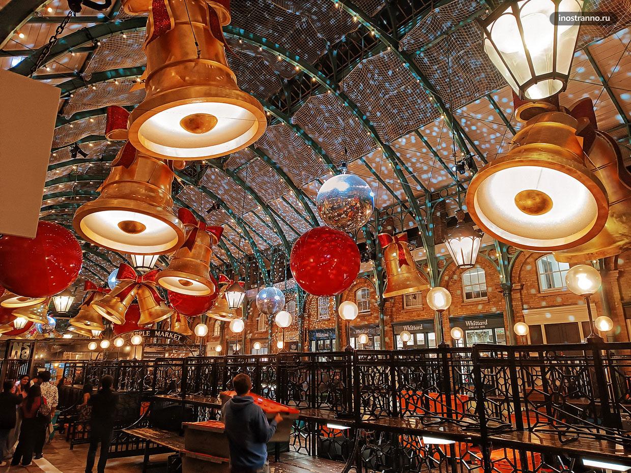 Рынок в Ковент-гарден славится гигантскими рождественскими елочными украшениями и красивой живой елкой. Здесь устраивают рождественские сценки и исполняют песни уличные артисты. За новогодним настроением непременно стоит заглянуть сюда.
