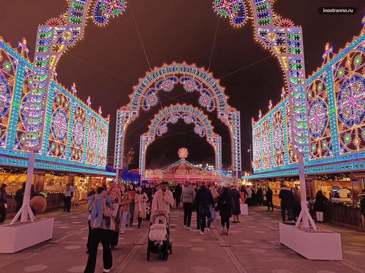 Это место с красивейшей подсветкой, мерцающими огнями, развлечениями и сувенирами на любой вкус. Вход в Гайд-парк платный: цена посещения доходит до £8,5 за взрослого в пиковые часы (вечером). Днем и утром посещать парк дешевле – билет в это время стоит £5. На входе образуются большие очереди, проносить свою еду и напитки на территорию запрещено. На территории работает крупный каток и огромное колесо обозрения, дающее вид на весь зимний Лондон.