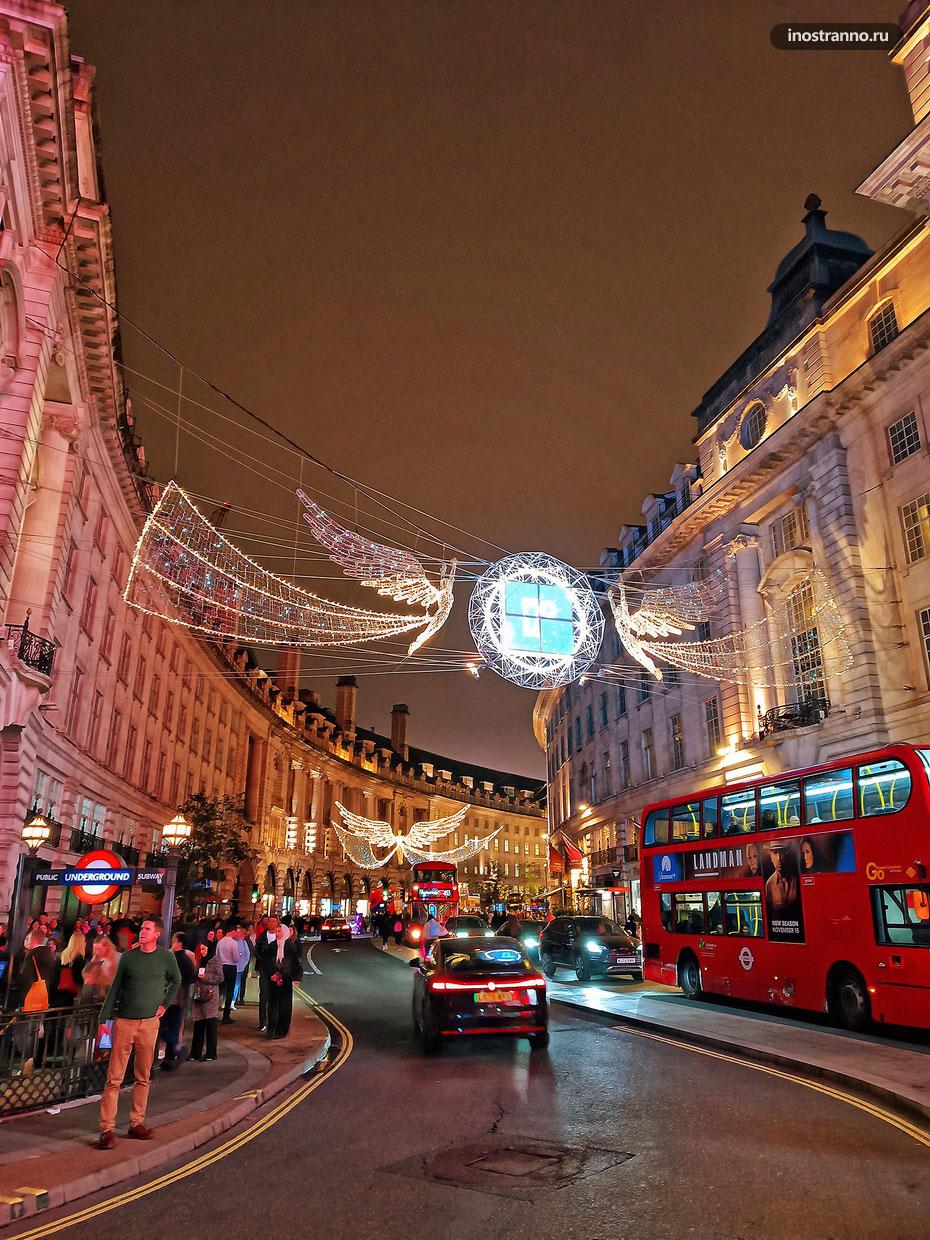 Самые инстаграмные новогодние улицы Лондона сосредоточены в районе станции метро Piccadilly Circus. Среди них знаменитые Oxford Street, Regent Street, Bond Street. Это место можно смело назвать лучшим местом с праздничной подсветкой в Лондоне.